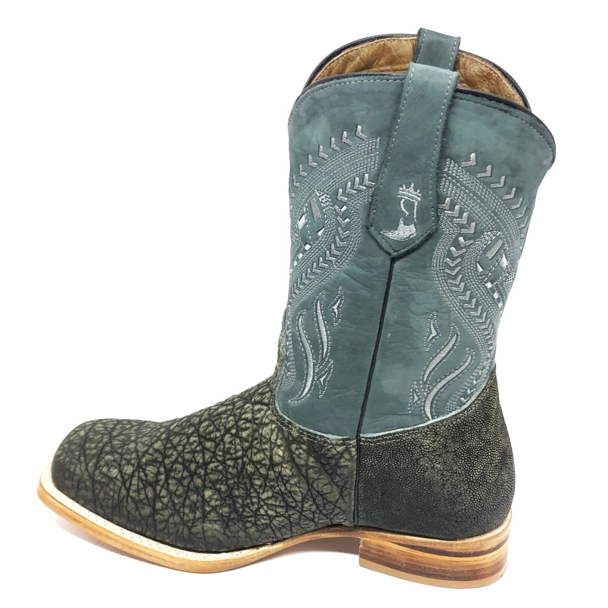 Bota Texana Reizinho Premium de Couro Legítimo de Elefante Cinza Natural LIMITED EDITION - Cano Médio, Bico Quadrado - Solado de Couro Artesanal Injetado | Reizinho Botas