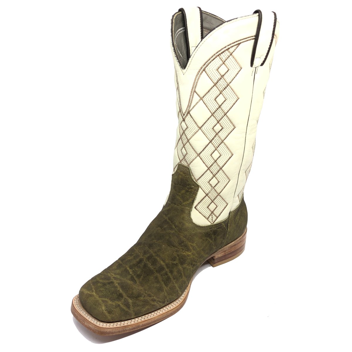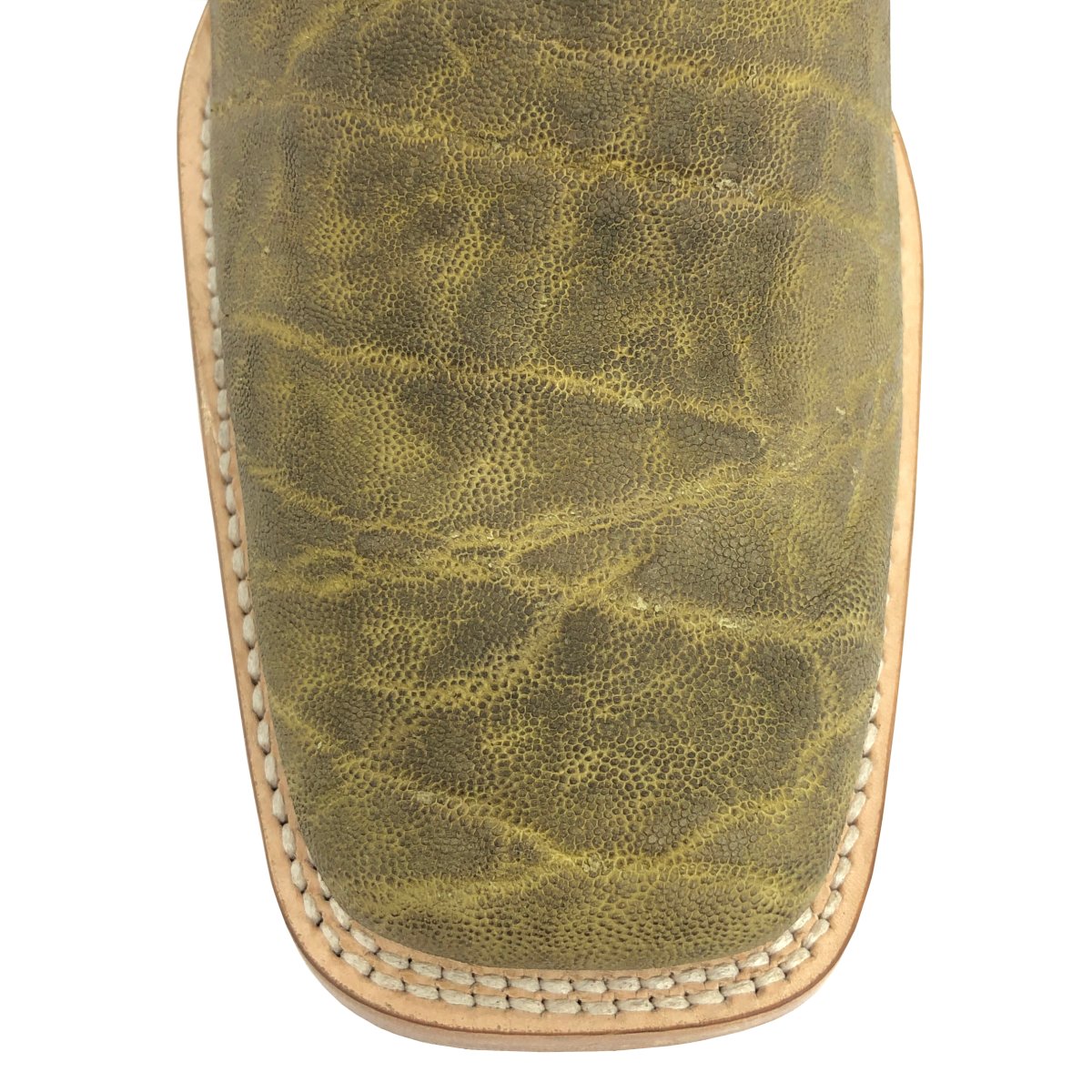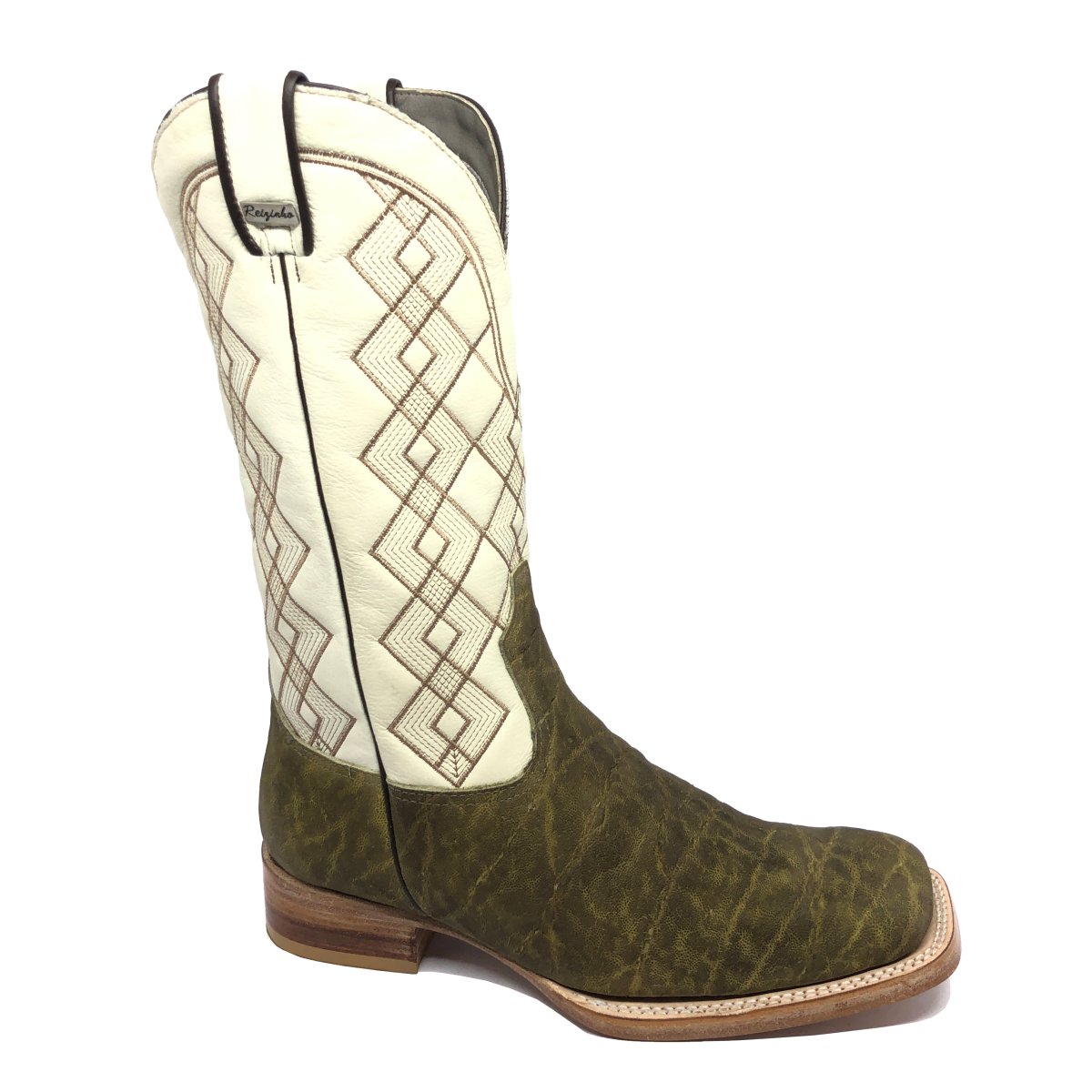 Bota Texana Reizinho Premium de Couro Legítimo de Elefante Verde Musgo - Cano Alto, Bico Quadrado - Solado de Couro Artesanal | Reizinho Botas