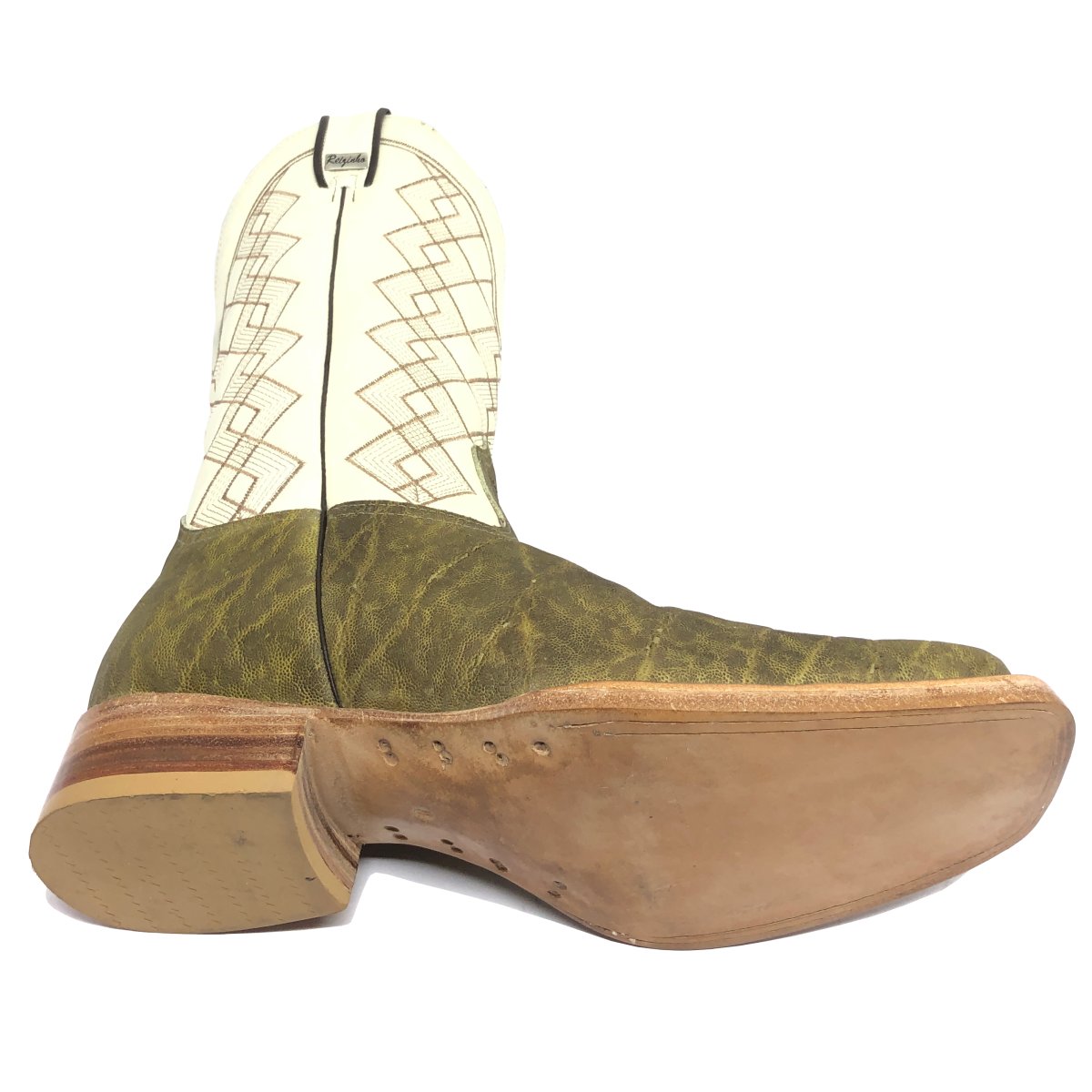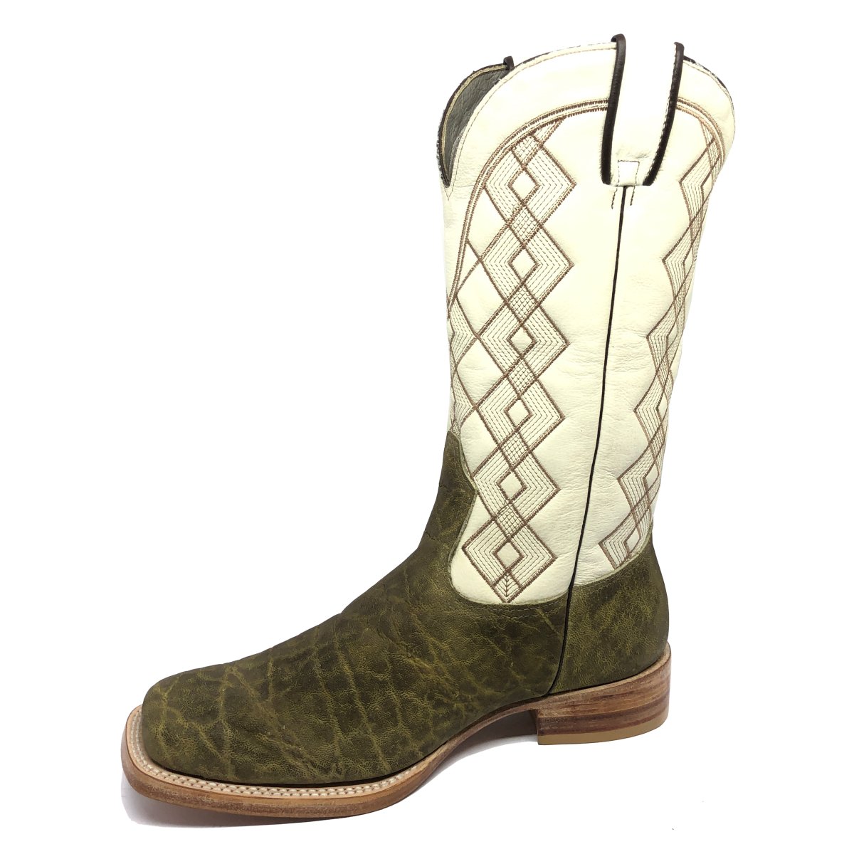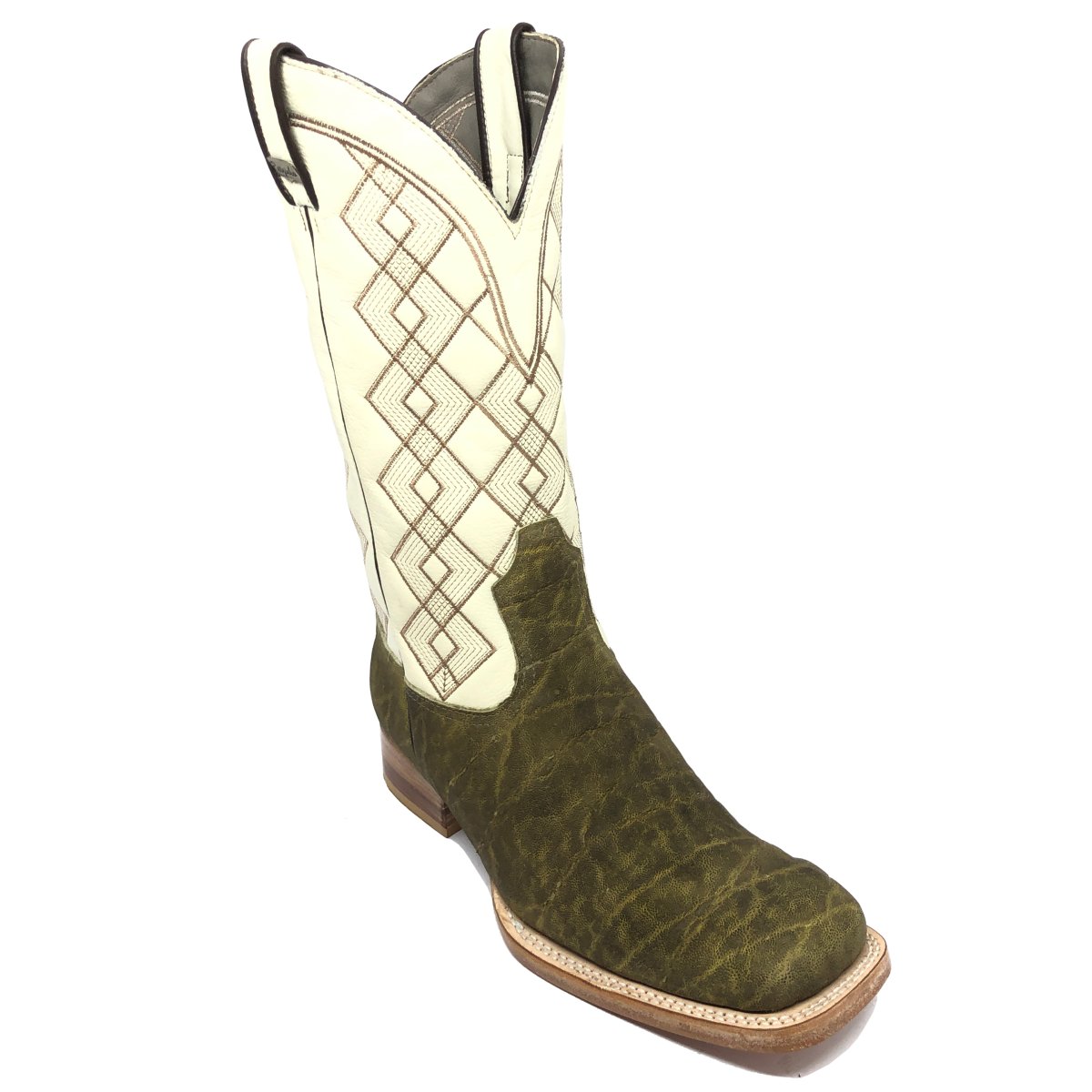 Bota Texana Reizinho Premium de Couro Legítimo de Elefante Verde Musgo - Cano Alto, Bico Quadrado - Solado de Couro Artesanal | Reizinho Botas