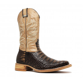 Bota de Couro de Jacaré Havana - Cano Alto, Bico Redondo, SOLADO X-FLEX ARTESANAL