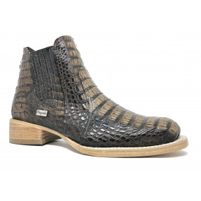 Bota de Couro de Jacaré Havana- Cano Médio, Bico Quadrado, SOLADO X-FLEX ARTESANAL