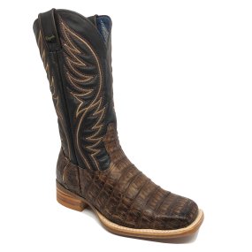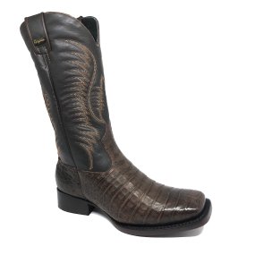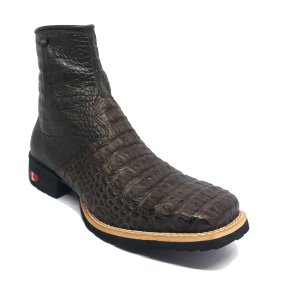 Bota de Couro de Jacaré Havana Escuro - Cano Alto, Bico Quadrado, Solado JUMP