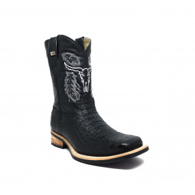 Bota de Jacaré Havana Escuro - Cano Curto, Bico Quadrado, Solado X-Flex Artesanal