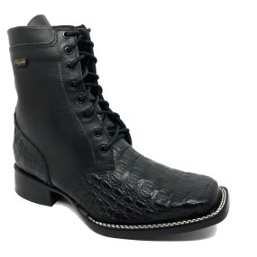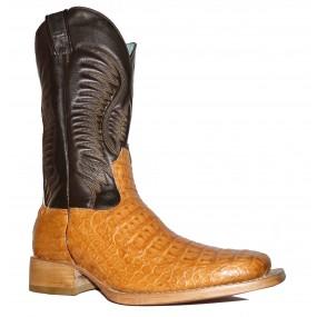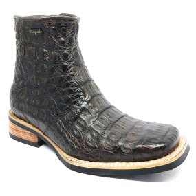 Bota de Couro de Jacaré Havana Escuro - Cano Médio, Bico Quadrado, Solado Flex Comfort