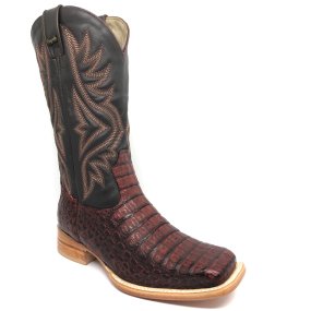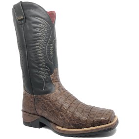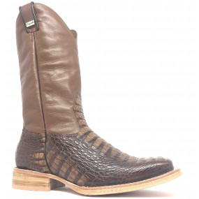 Bota de Couro de Jacaré Marrom - Cano Alto, Bico Quadrado, SOLADO DE COURO ARTESANAL