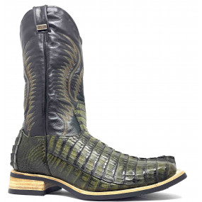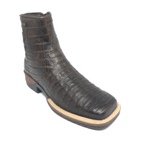 Bota de Couro de Jacaré Marrom - Cano Alto, Bico Quadrado, Solado Flex Comfort