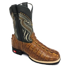 Bota de Jacaré Marrom - Cano Curto, Bico Fino, Solado de Couro Artesanal
