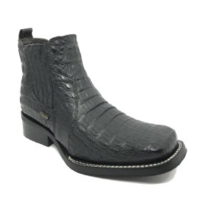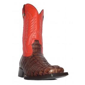 Bota de Couro de Jacaré Marrom - Cano Curto, Bico Quadrado, SOLADO DE COURO ARTESANAL