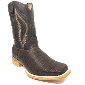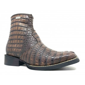 Bota de Couro de Jacaré Marrom - Cano Curto, Bico Quadrado, SOLADO FLEX COMFORT