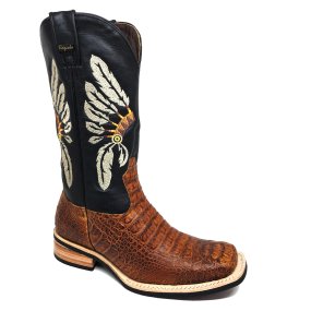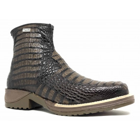 Bota de Couro de Jacaré Marrom - Cano Curto, Bico Quadrado, SOLADO JUMP