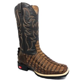 Bota de Couro de Jacaré Marrom - Cano Médio, Bico Quadrado, Solado Flex Comfort