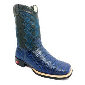 Bota de Couro de Jacaré Preto - Cano Alto, Bico Quadrado, Solado Flex Comfort