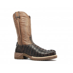 Bota de Couro de Jacaré Preto - Cano Alto, Bico Quadrado, Solado Flex Comfort