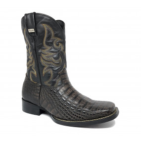 Bota de Couro de Jacaré Preto - Cano Alto, Bico Quadrado, Solado Flex Comfort