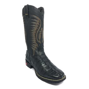 Bota de Jacaré Preto - Cano Curto, Bico Fino Quadradinho, Solado de Couro Artesanal
