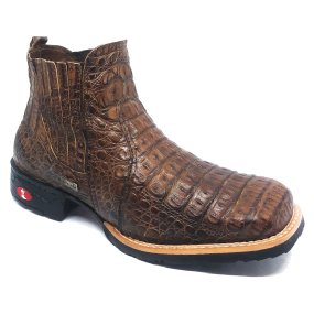 Bota de Jacaré Preto - Cano Curto, Bico Quadrado, Solado de Couro Artesanal