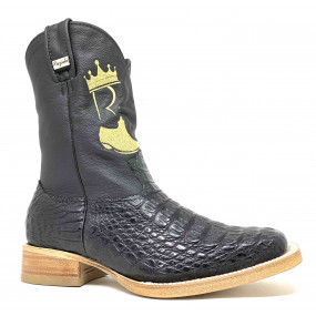 Bota de Couro de Jacaré Preto - Cano Curto, Bico Quadrado, SOLADO FLEX COMFORT