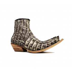 Bota de Couro de Jacaré Preto - Cano Curto, Bico Quadrado, SOLADO X-FLEX ARTESANAL
