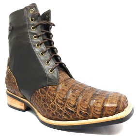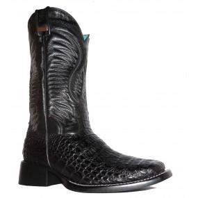 Bota de Couro de Jacaré Preto - Cano Médio, Bico Quadrado, Solado Flex Comfort