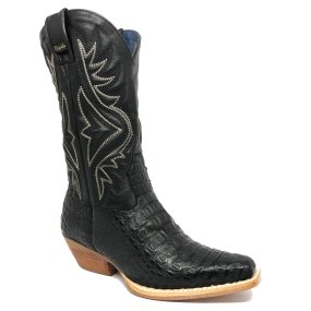 Bota de Couro de Jacaré Tabaco - Cano Alto, Bico Quadrado, Solado Flex Comfort