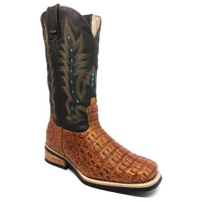 Bota de Couro de Jacaré Tabaco- Cano Alto, Bico Quadrado, Solado Flex Comfort