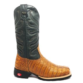 Bota de Jacaré Tabaco - Cano Curto, Bico Quadrado, Solado X-Flex Artesanal