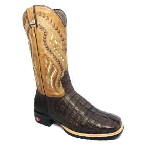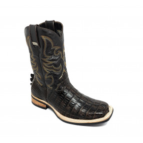 Bota de Couro de Jacaré Tabaco - Cano Médio, Bico Quadrado, SOLADO X-FLEX ARTESANAL