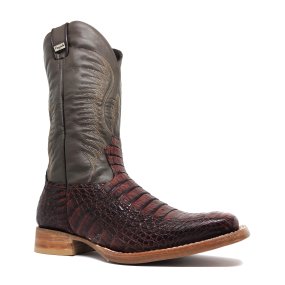 Bota de Couro de Jacaré Tabaco Rabo - Cano Alto, Bico Quadrado, Solado Flex Comfort