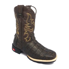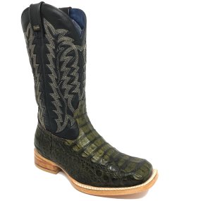 Bota de Couro de Jacaré Verde Musgo - Cano Médio, Bico Quadrado, Solado Flex Comfort