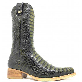 Bota de Couro de Jacaré Vinho- Cano Alto, Bico Quadrado, Solado Flex Comfort