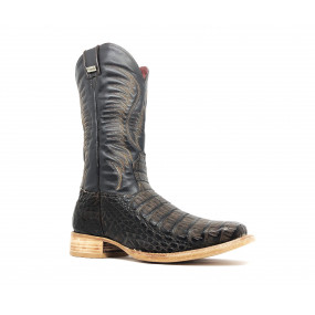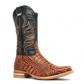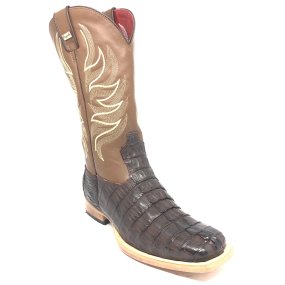 Bota de Jacaré Havana Escuro Rabo - Cano Alto, Bico Quadrado, Solado Flex Comfort