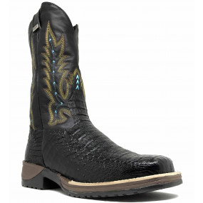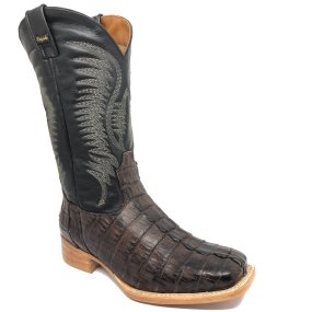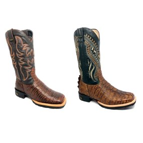 Bota de Jacaré Havana Rabo - Cano Médio, Bico Quadrado, Solado de Couro Artesanal