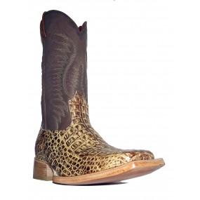 Bota de Jacaré Marrom- Cano Alto, Bico Quadrado, SOLADO X-FLEX ARTESANAL