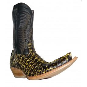 Bota de Jacaré Marrom Rabo - Cano Médio, Bico Quadrado, Solado C-Flex Artesanal