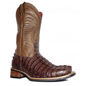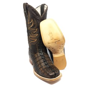 Bota de Jacaré Preto Rabo - Cano Alto, Bico Quadrado, SOLADO DE COURO ARTESANAL