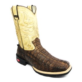 Bota de Jacaré Preto Rabo - Cano Alto, Bico Quadrado, SOLADO DE COURO ARTESANAL