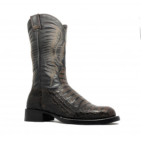 Bota de Jacaré Preto Rabo - Cano Alto, Bico Quadrado, Solado Flex Comfort