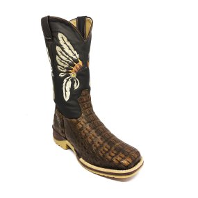 Bota de Jacaré Preto Rabo - Cano Alto, Bico Quadrado, Solado X-Flex Artesanal