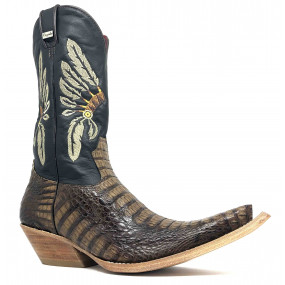 Bota de Jacaré Tabaco - Cano Alto, Bico Quadrado, Solado Flex Comfort