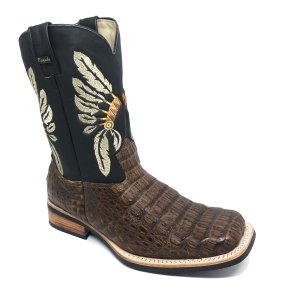 Bota de Jacaré Tabaco - Cano Alto, Bico Quadrado, SOLA JUMP