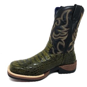 Bota de Jacaré Tabaco Rabo - Cano Alto, Bico Quadrado, Solado Flex Comfort