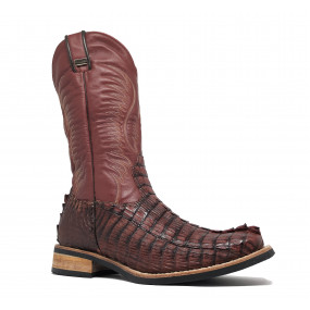 Bota de Jacaré Tabaco Rabo - Cano Alto, Bico Quadrado, Solado Flex Comfort