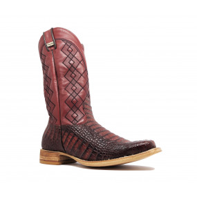 Bota de Jacaré Verde Musgo - Cano Alto, Bico Quadrado, Solado Flex Comfort