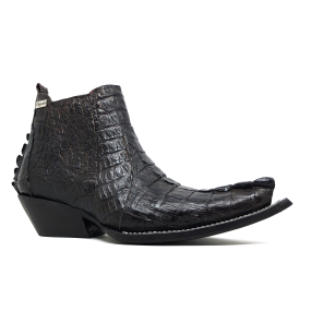 Bota de Jacaré Verde Musgo Rabo - Cano Alto, Bico Quadrado, Solado Flex Comfort