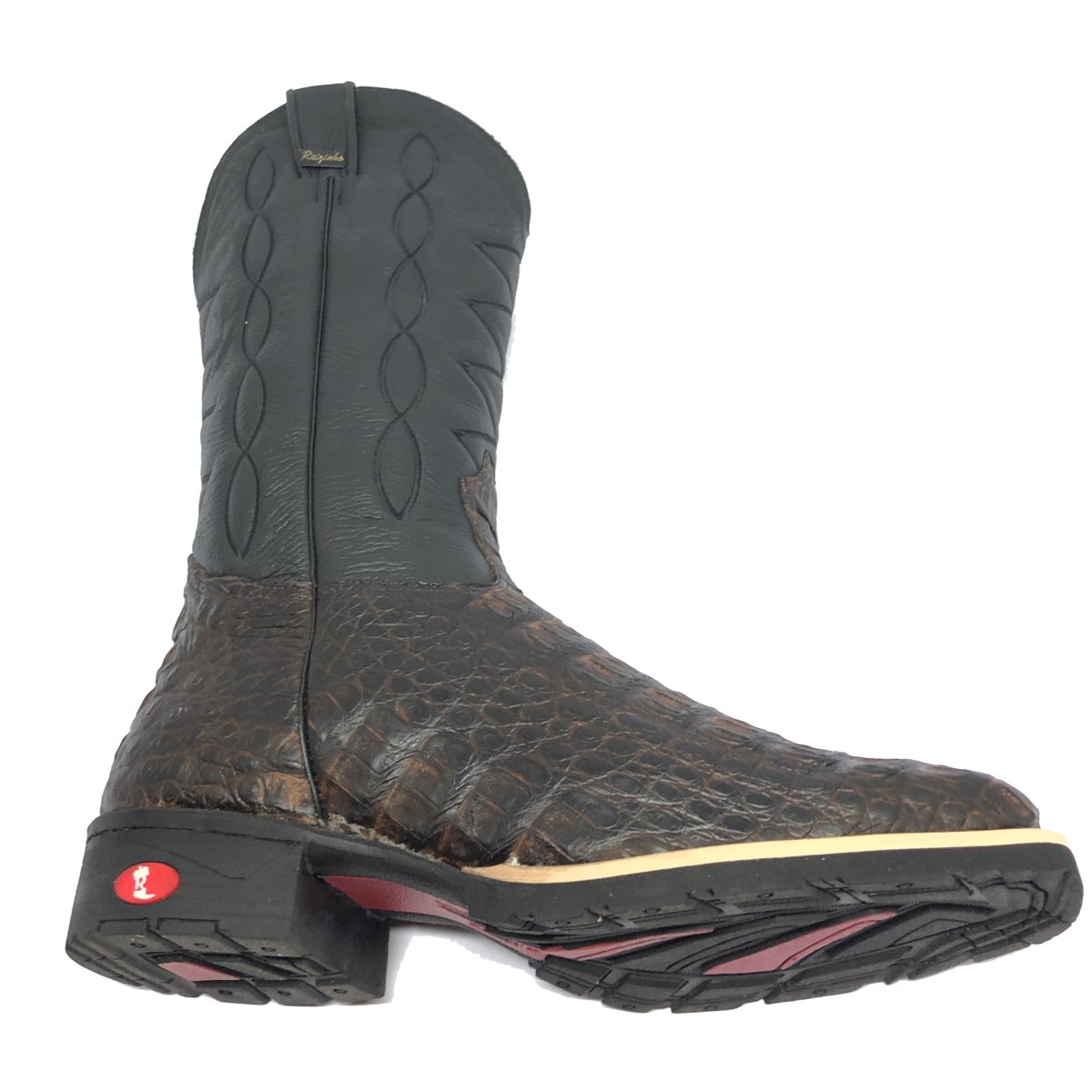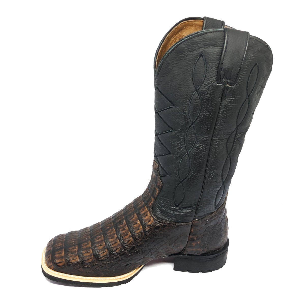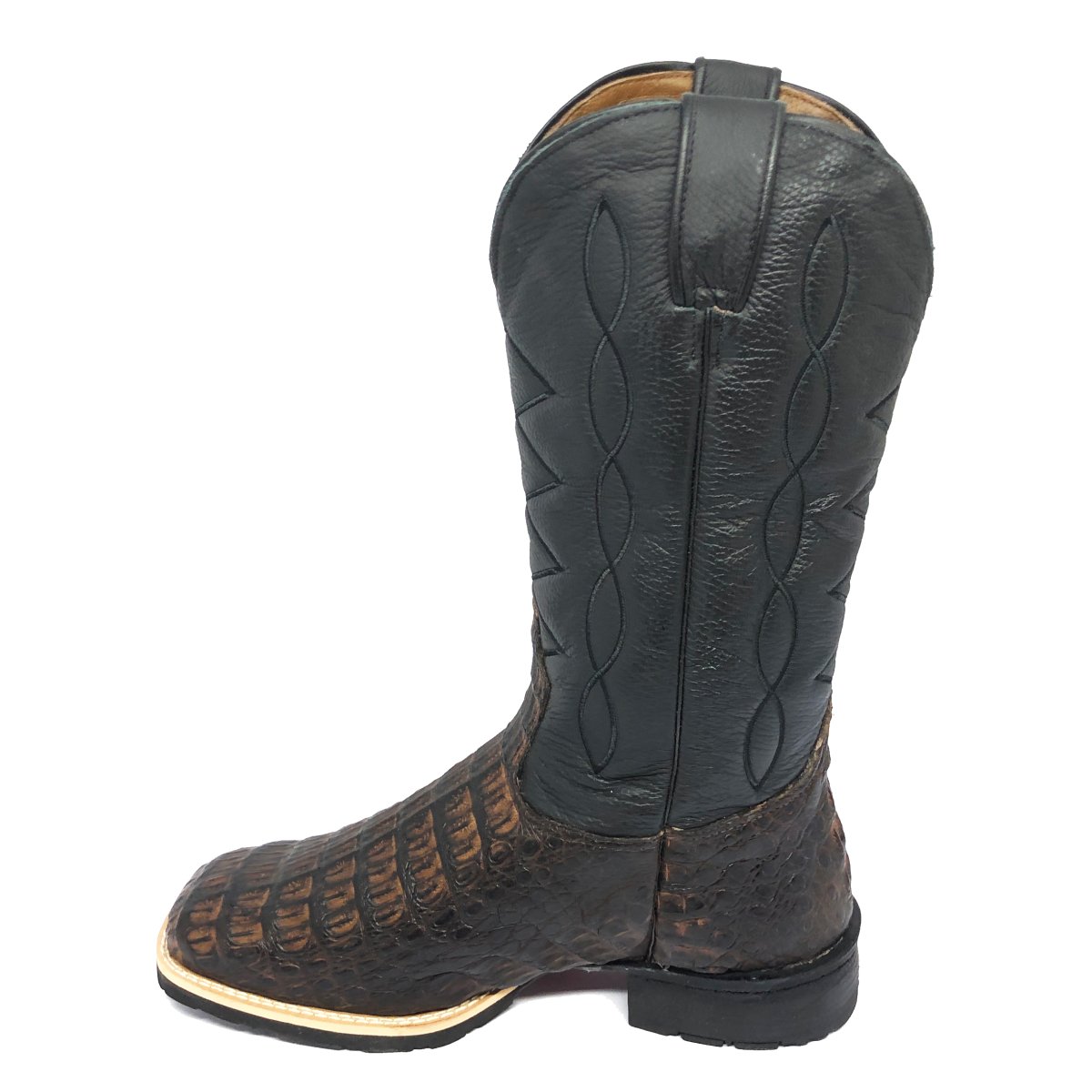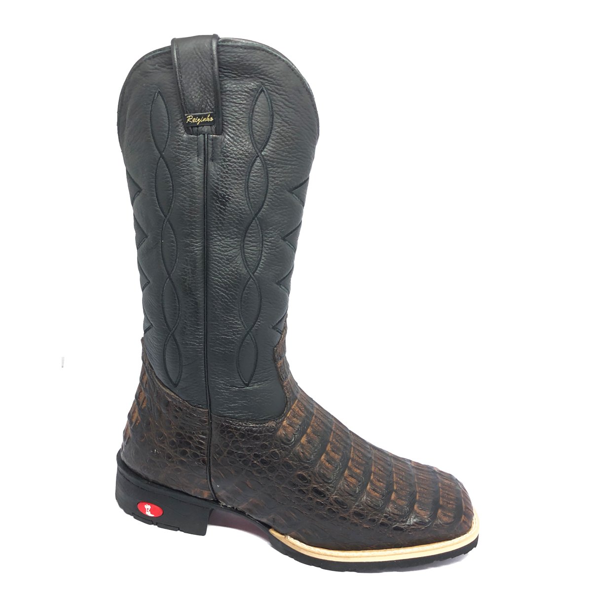 Bota Texana De Couro De Jacaré Marrom - Cano Alto, Bico Quadrado - Solado Flex Comfort | Reizinho Botas