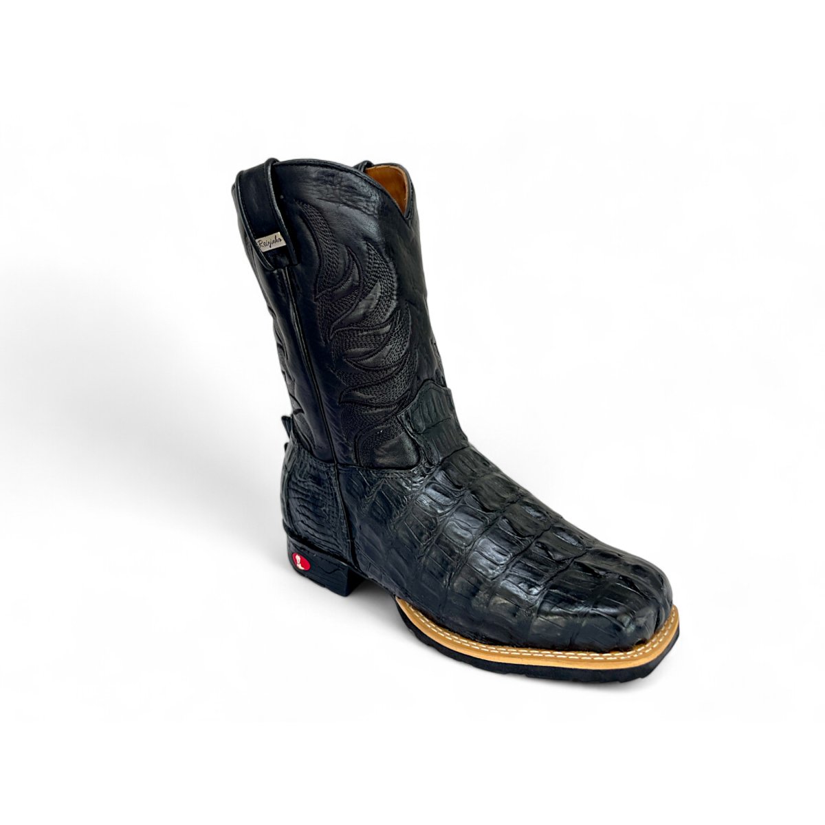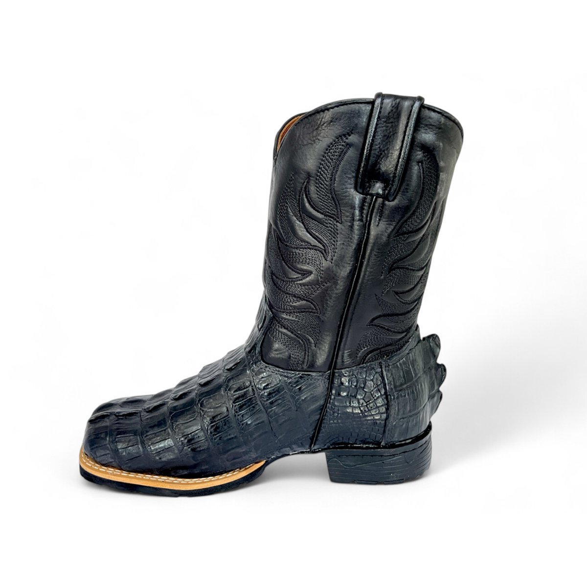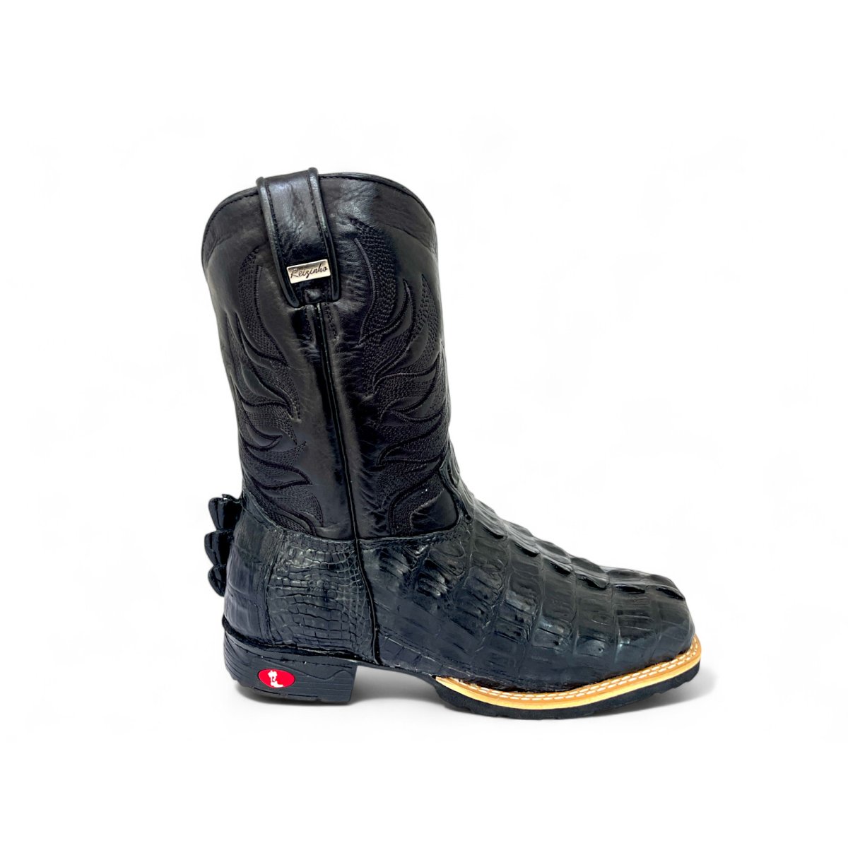 Bota Texana De Couro De Jacaré Preto Rabo - Cano Médio, Bico Quadrado - Solado Flex Comfort | Reizinho Botas