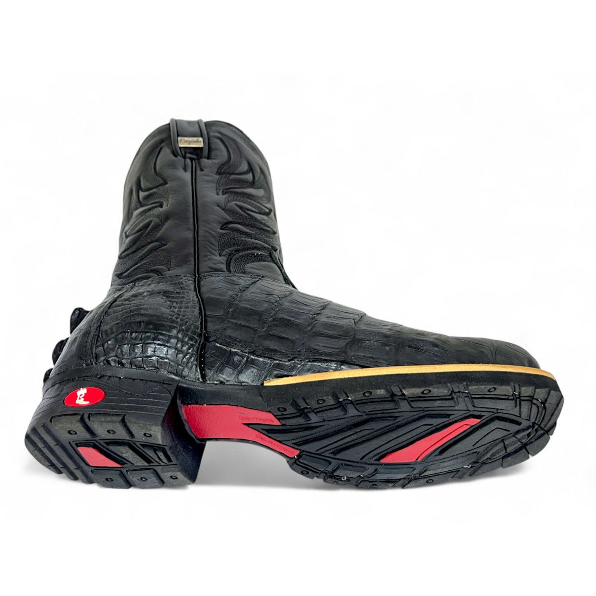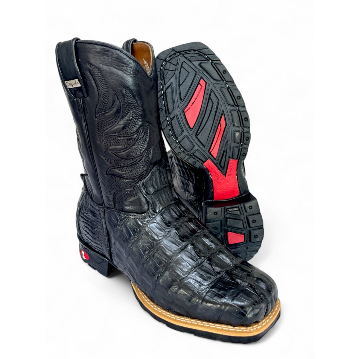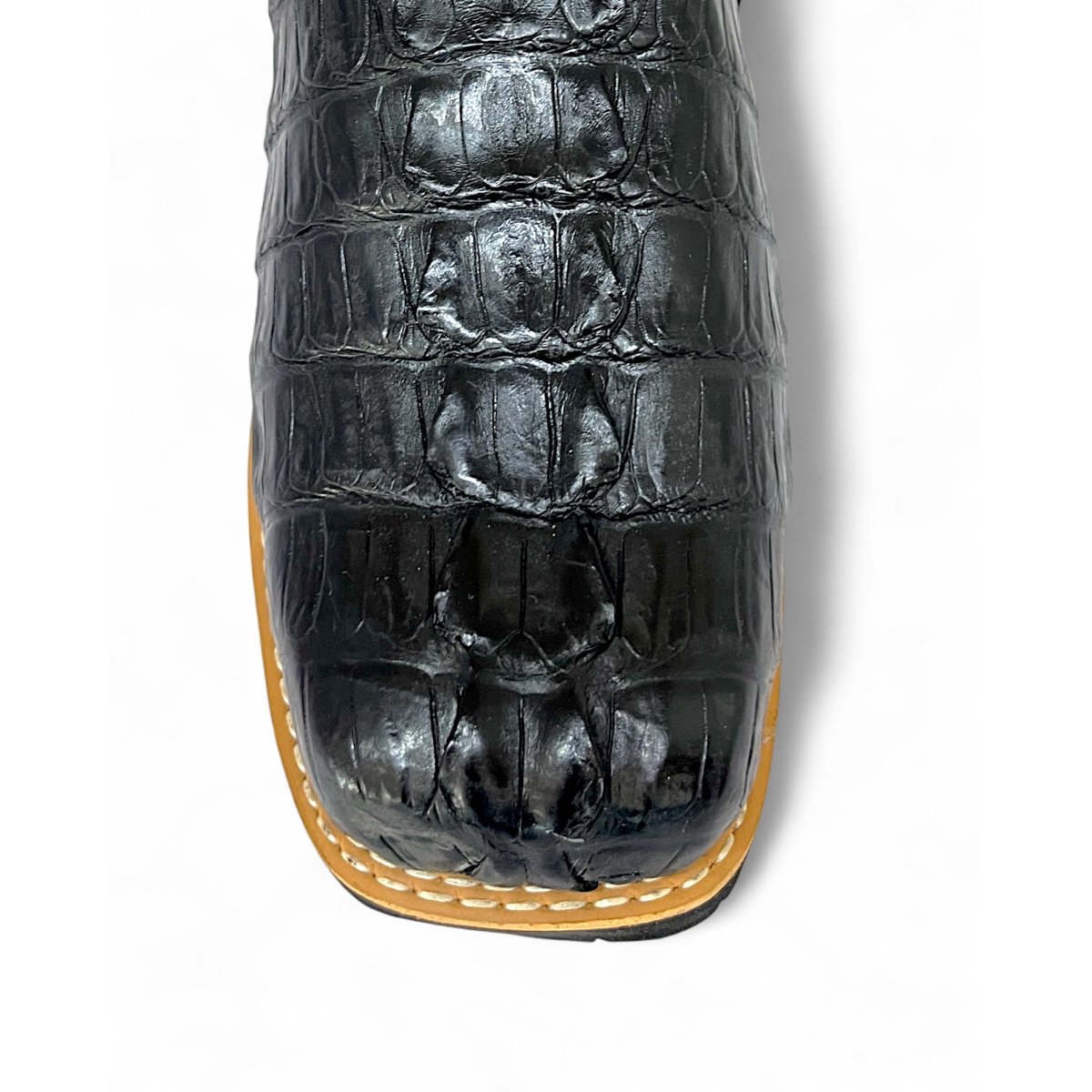 Bota Texana De Couro De Jacaré Preto Rabo - Cano Médio, Bico Quadrado - Solado Flex Comfort | Reizinho Botas