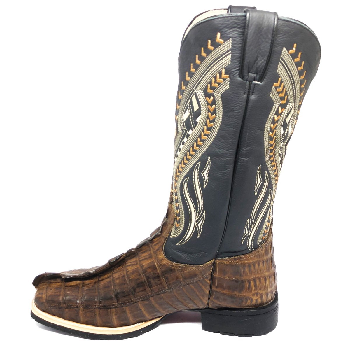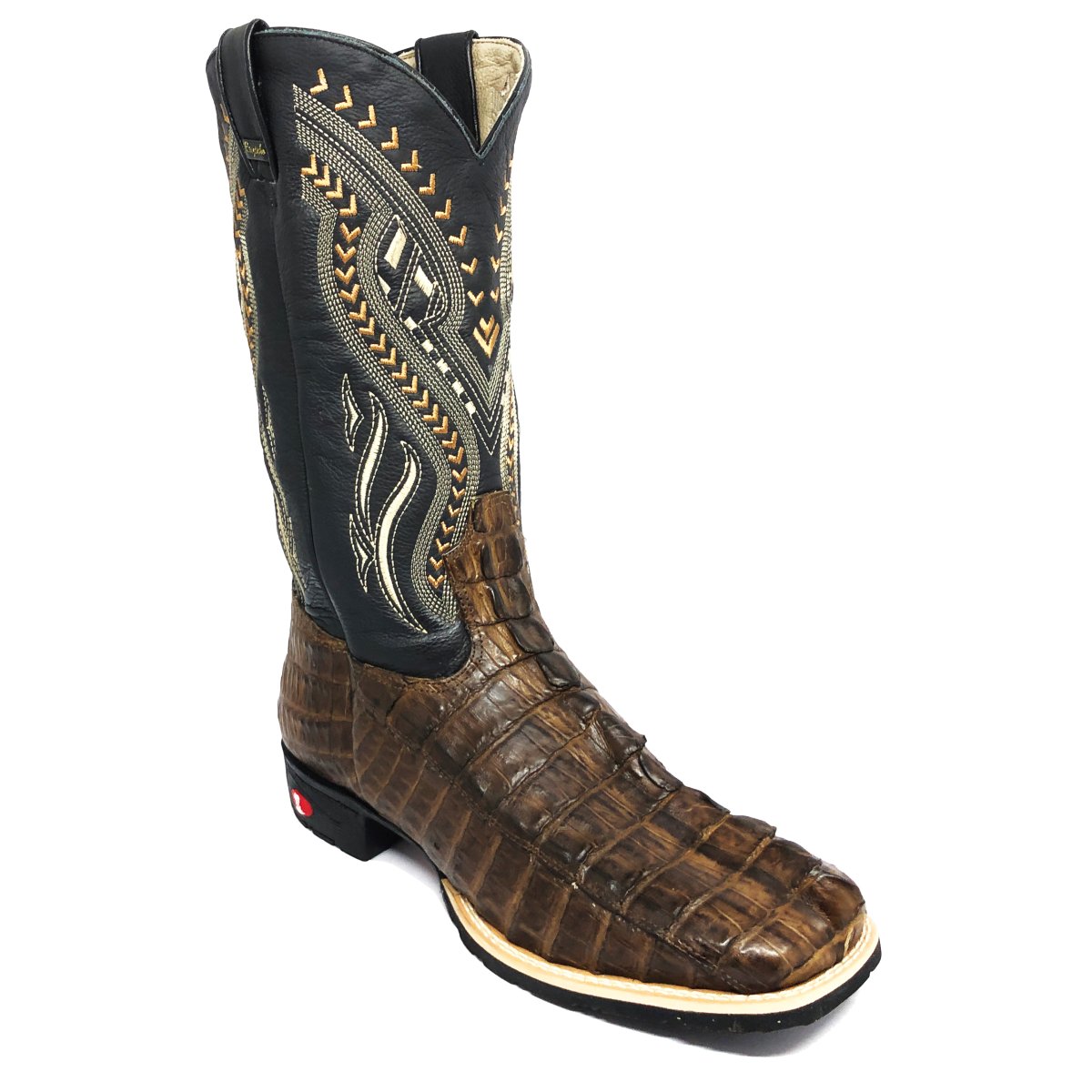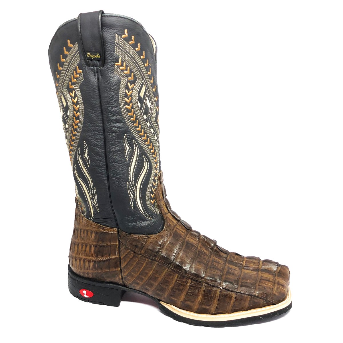 Bota Texana De Couro De Jacaré Tabaco Rabo - Cano Alto, Bico Quadrado - Solado Flex Comfort | Reizinho Botas