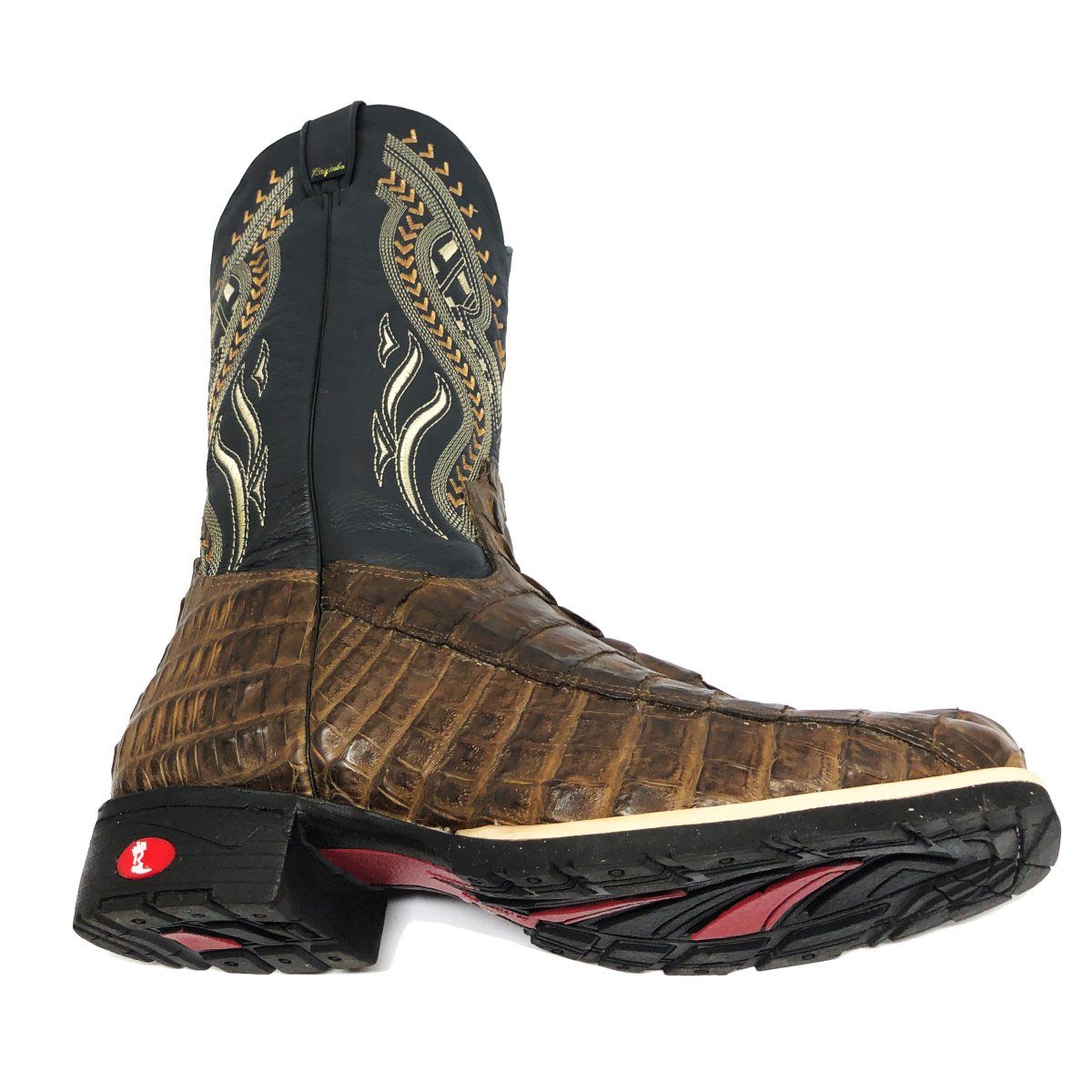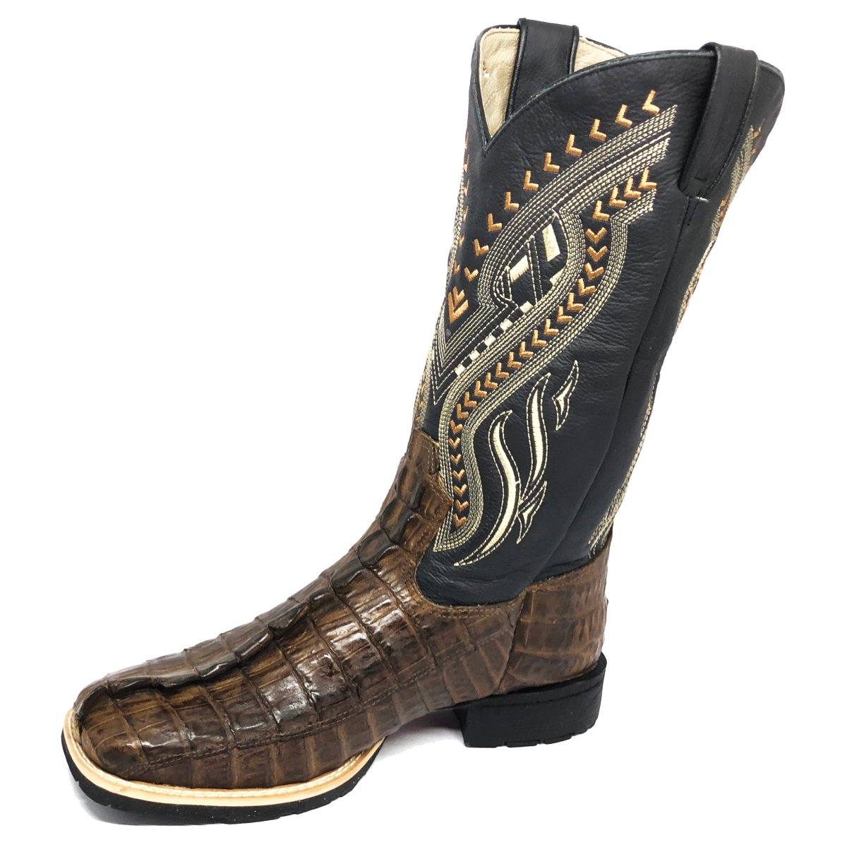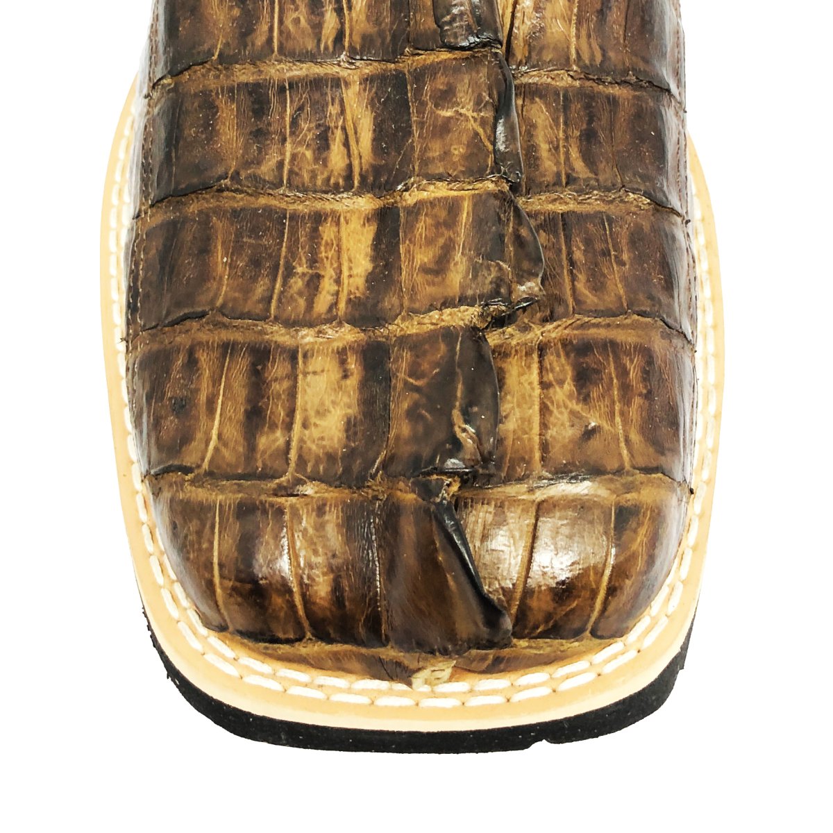 Bota Texana De Couro De Jacaré Tabaco Rabo - Cano Alto, Bico Quadrado - Solado Flex Comfort | Reizinho Botas