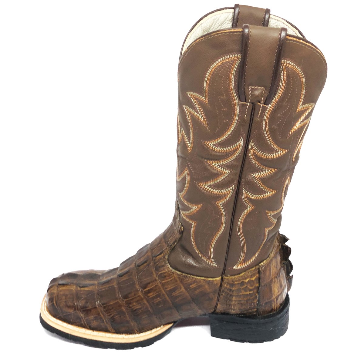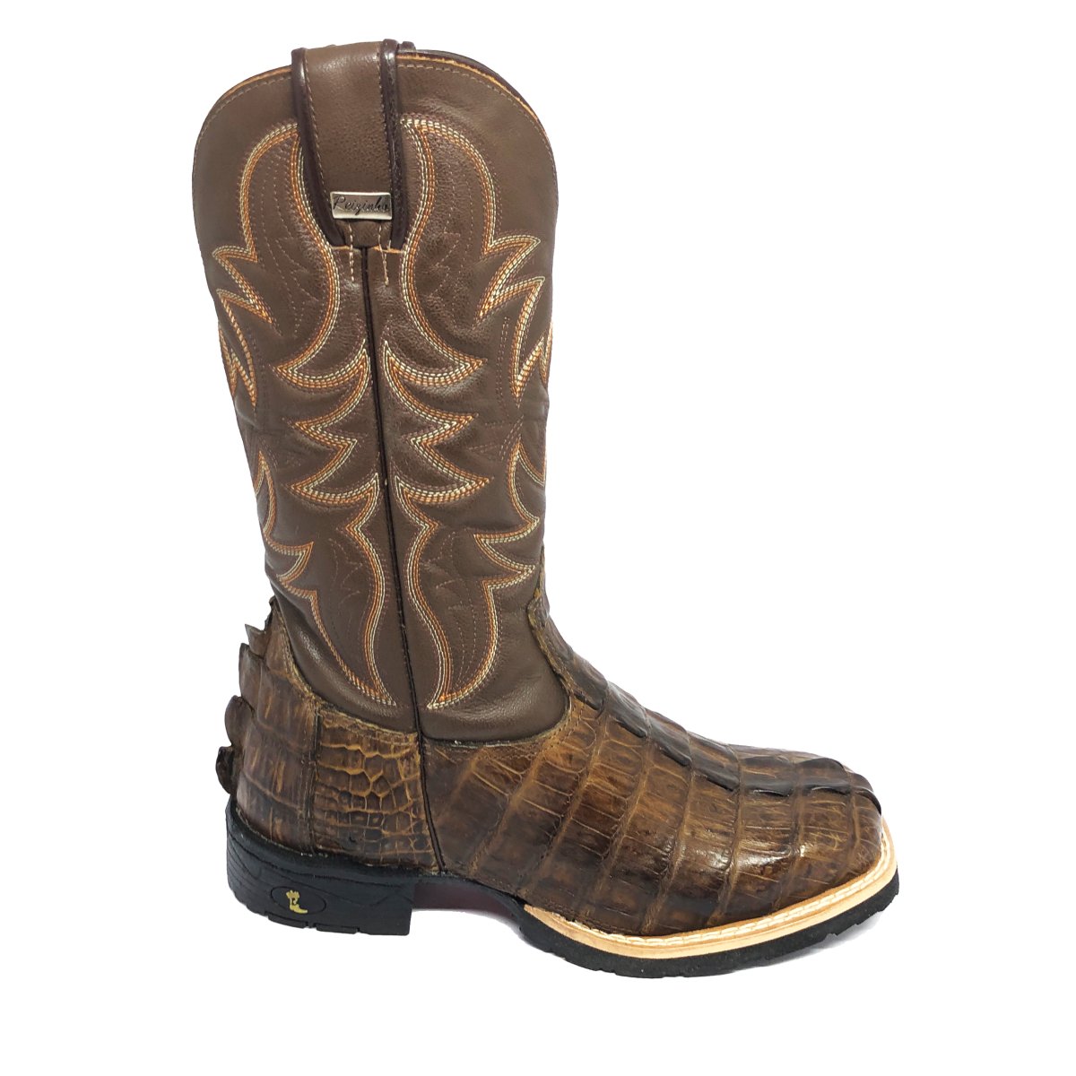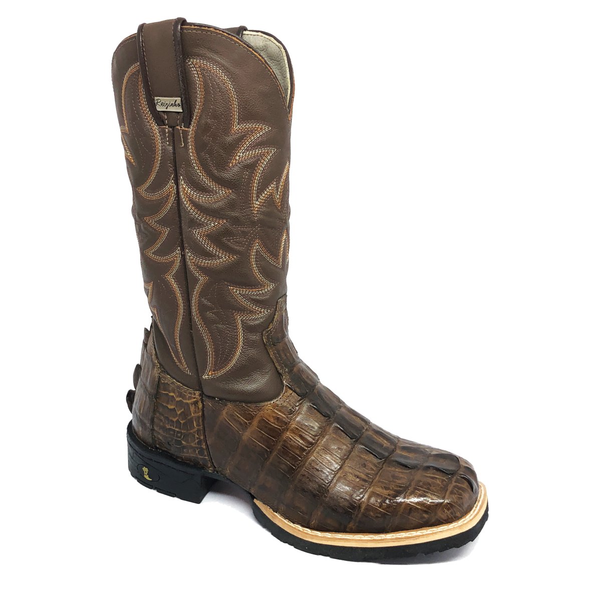 Bota Texana De Couro De Jacaré Tabaco Rabo - Cano Alto, Bico Quadrado - Solado Flex Comfort | Reizinho Botas